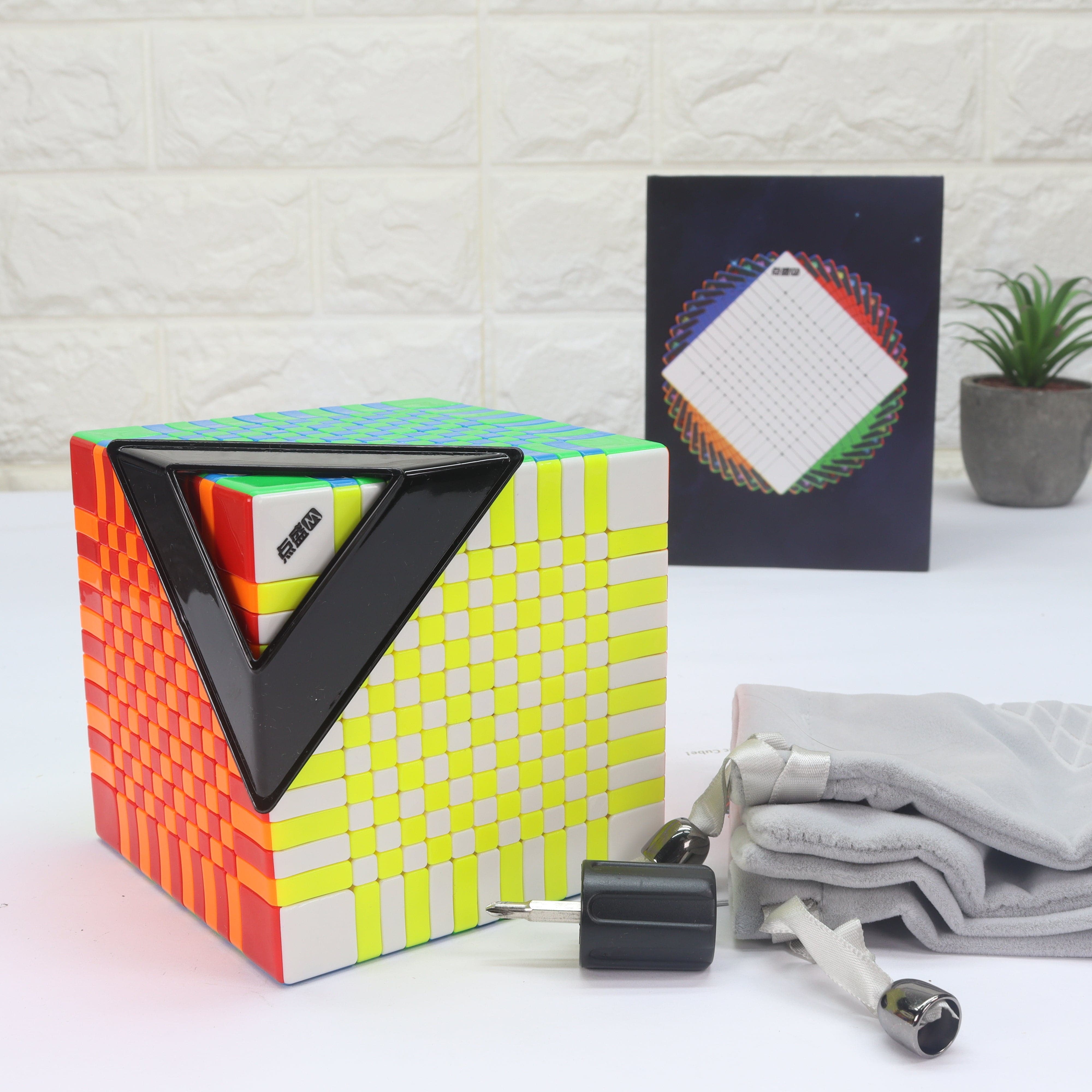 Introducing the DianSheng Galaxy 13x13. Probably the best mass-produced, magnetic 13x13 at the time of writing. Included in the box is a screwdriver for adjusting the tension and a soft, grey cube pouch.
